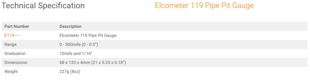 The Elcometer 119 Pipe Pit Gauge is a pocket sized gauge designed to identify the condition of a pipe.