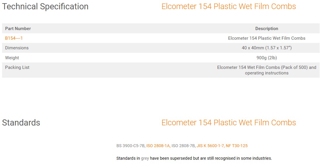 The Elcometer 154 Plastic Wet Film Combs are made from ABS plastic and are designed to be used once and kept as a record of wet film thickness measurement for quality assurance or customer requirements.