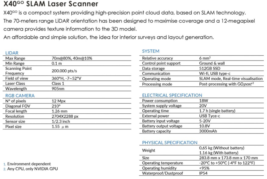 X40GO is a compact system providing high-precision point cloud data, based on SLAM technology.