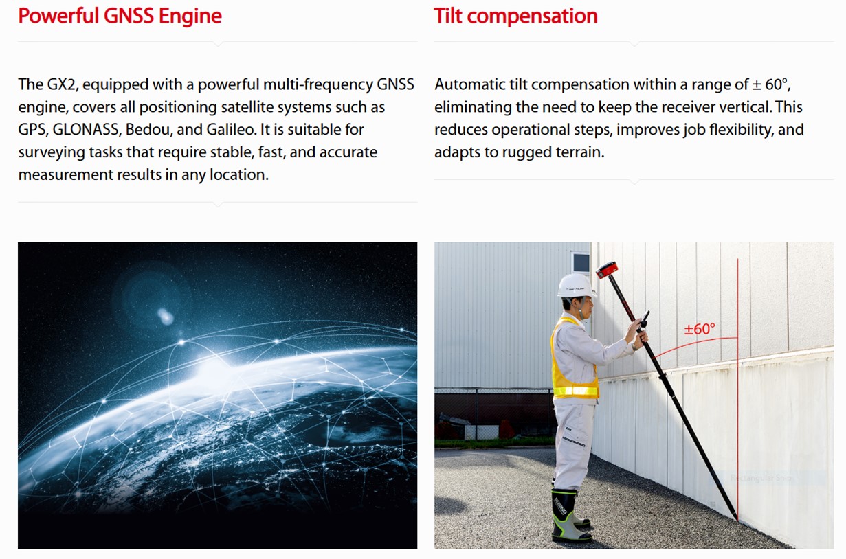 Each of the three GX models is equipped with new features to support GNSS surveying works. GNSS surveying is evolving to become more efficient and innovative.