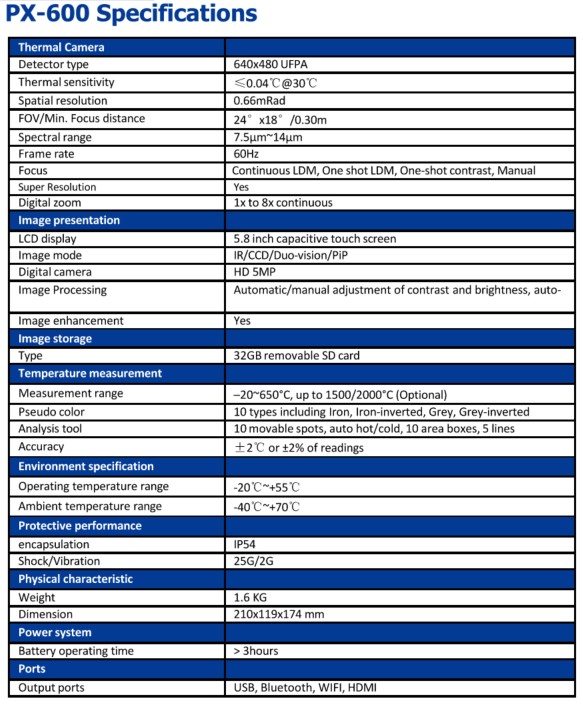 The Satir PX600 High-Resolution Thermal Camera embraces a high-level detector 640x480 with a super resolution option, 1280x960.